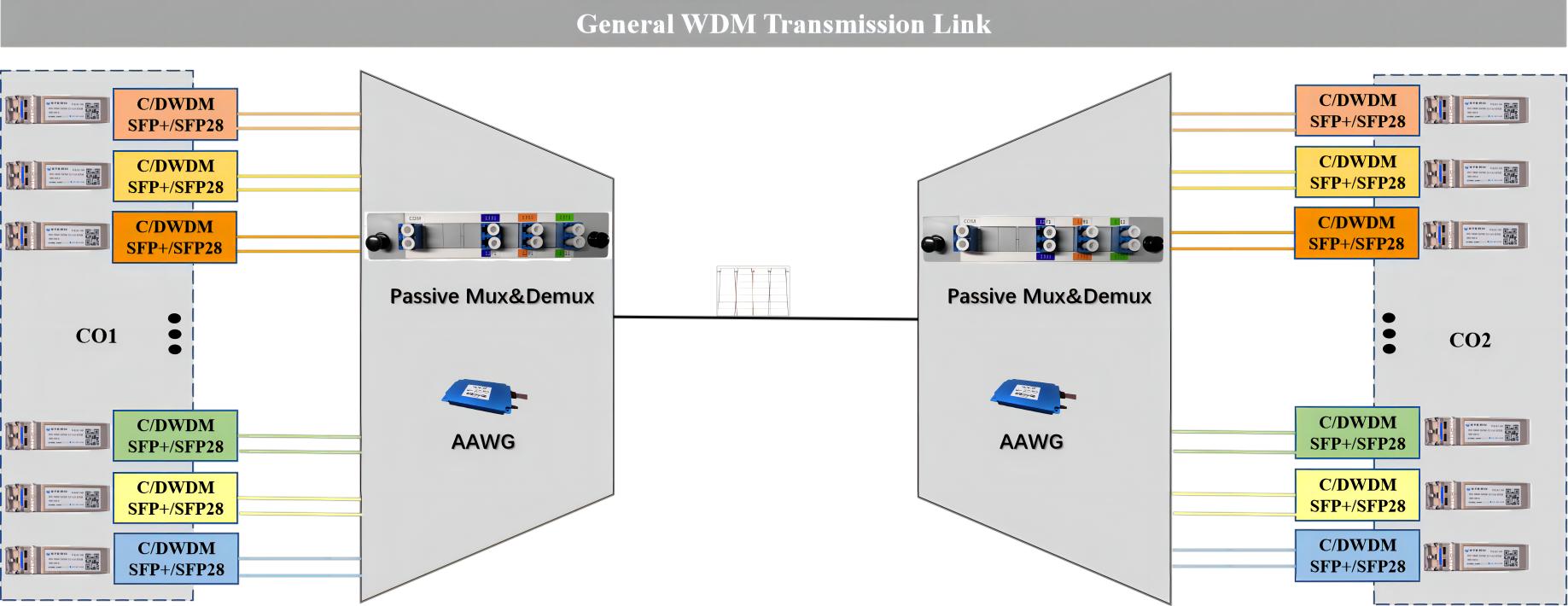 在光通信行业有CWDM/DWDM/LWDM之分,波分复用(WDM)是一种光纤传输技术,可以使用多个光波长(或颜色)在同一介质上发送数据。两个或更多的波长可以在一根光纤上传播,几个信号可以在一个光波导中以光谱上不同的波长或频率进行传输。